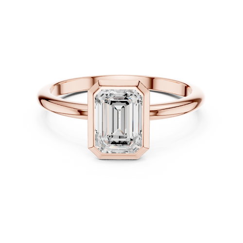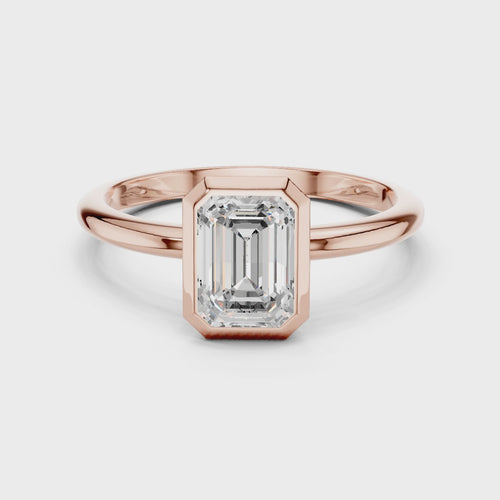 Emerald Cut Lab Diamond Ring, Minimalist Bezel Solitaire